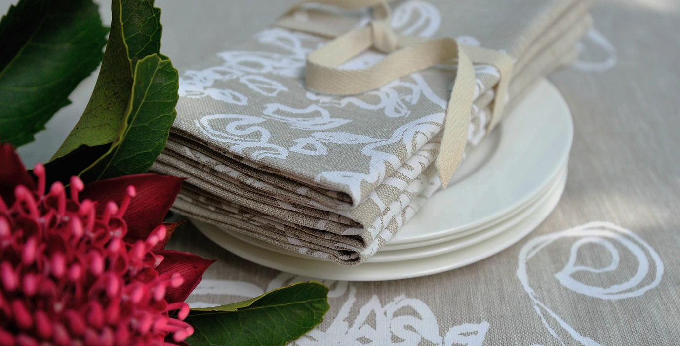 I love that every piece of nature is unique. There are always be hidden treasures to find and admire. It is my passion to capture the beauty of nature and bring it indoors, whether on a table cloth or apron, so that families and friends can gather and enjoy lovely food together while appreciating beautiful, natural designs.